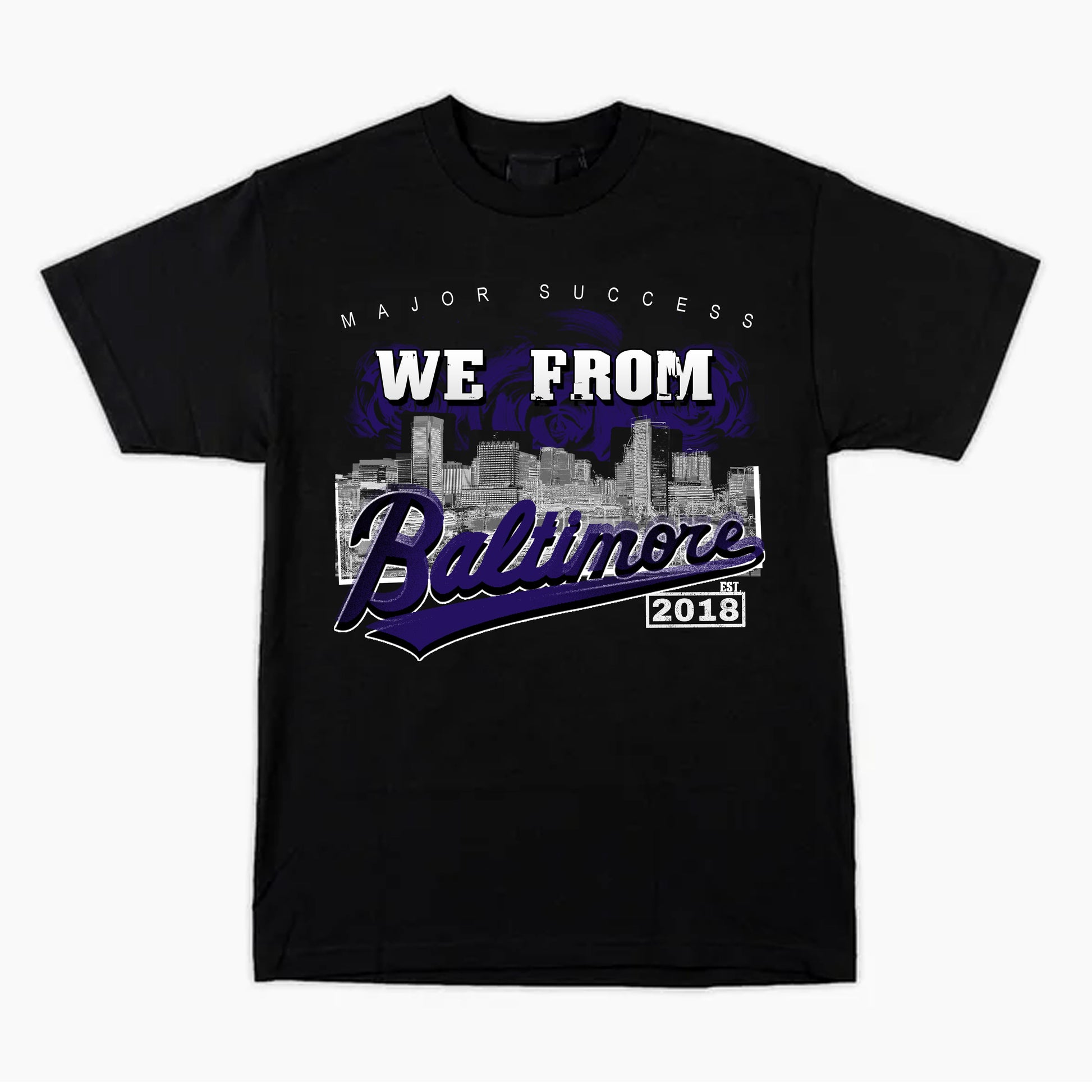 Show your Baltimore pride with our "We from Baltimore" t-shirts! Made from high-quality Gildan fabric, these shirts are not only comfortable but also durable, ensuring they stand up to everyday wear. Each t-shirt features a bold and stylish design that captures the spirit of Baltimore, making it perfect for locals and visitors alike. Whether you’re cheering for the Ravens, exploring the Inner Harbor, or enjoying a crab feast, this shirt is a must-have addition to your wardrobe. Available in a variety of sizes and colors, it’s the perfect way to express your love for the Charm City. Wear it proudly and let everyone know where you’re from!